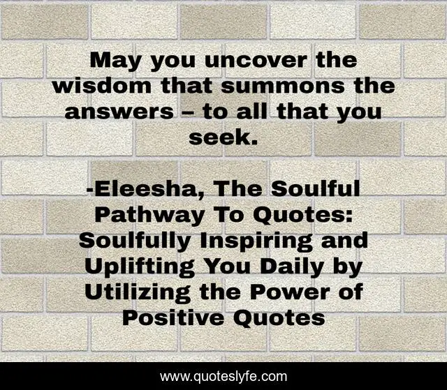 "Eleesha, The Soulful Pathway To Quotes: Soulfully Inspiring and Uplifting You Daily by Utilizing the Power of Positive Quotes Quotes." Quoteslyfe.com, 2025. Fri. 05 Dec. 2025. <https://www.quoteslyfe.com/quote/May-you-uncover-the-wisdom-that-summons-205068>.