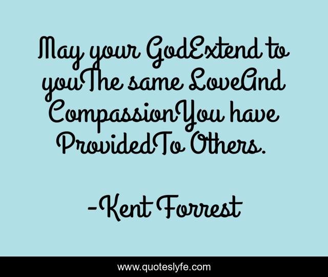 This page presents the quote "May your GodExtend to youThe same LoveAnd CompassionYou have ProvidedTo Others.". Author of this quote is Kent Forrest. This quote is about compassion, love, affection, prayer,.