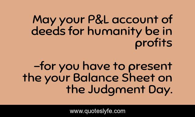 "for you have to present the your Balance Sheet on the Judgment Day. Quotes." Quoteslyfe.com, 2025. Sat. 06 Dec. 2025. <https://www.quoteslyfe.com/quote/May-your-P-L-account-of-deeds-84184>.