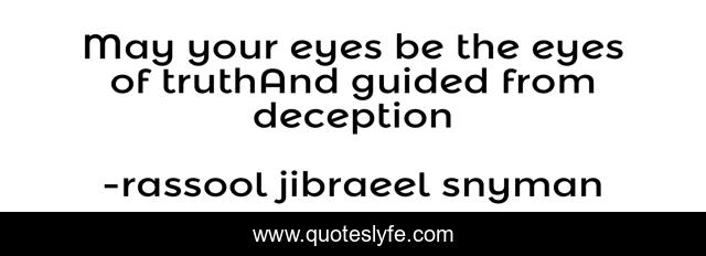 This page presents the quote "May your eyes be the eyes of truthAnd guided from deception". Author of this quote is rassool jibraeel snyman. This quote is about philosophical, philosophy, philosopher, truth, philosophical-musings,.