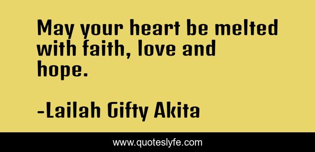 This page presents the quote "May your heart be melted with faith, love and hope.". Author of this quote is Lailah Gifty Akita. This quote is about faith, life, christian, motivation, love, affection,.