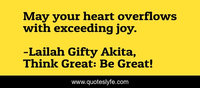 "Lailah Gifty Akita, Think Great: Be Great! Quotes." Quoteslyfe.com, 2025. Fri. 05 Dec. 2025. <https://www.quoteslyfe.com/quote/May-your-heart-overflows-with-exceeding-joy-169204>.