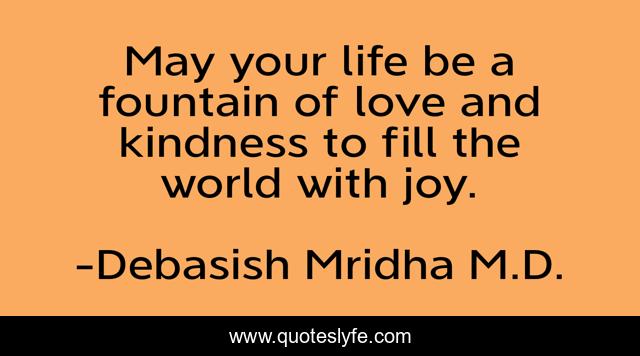 This page presents the quote "May your life be a fountain of love and kindness to fill the world with joy.". Author of this quote is Debasish Mridha M.D.. This quote is about philosophy, love, fountain-of-love, blessing, debasish-mridha, blessing-for-life, quotes, inspirational, prayer,.