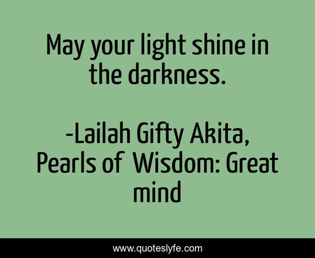 "Lailah Gifty Akita, Pearls of Wisdom: Great mind Quotes." Quoteslyfe.com, 2025. Fri. 05 Dec. 2025. <https://www.quoteslyfe.com/quote/May-your-light-shine-in-the-darkness-85217>.