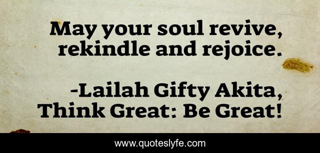 "Lailah Gifty Akita, Think Great: Be Great! Quotes." Quoteslyfe.com, 2025. Sat. 06 Dec. 2025. <https://www.quoteslyfe.com/quote/May-your-soul-revive-rekindle-and-rejoice-62599>.