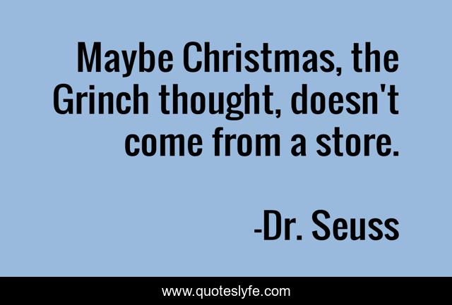 This page presents the quote "Maybe Christmas, the Grinch thought, doesn't come from a store.". Author of this quote is Dr. Seuss. This quote is about thought, maybe, come,.