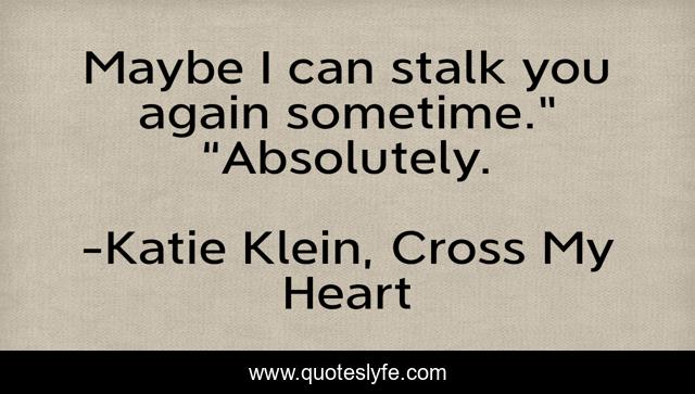 "Katie Klein, Cross My Heart Quotes." Quoteslyfe.com, 2025. Sat. 06 Dec. 2025. <https://www.quoteslyfe.com/quote/Maybe-I-can-stalk-you-again-sometime-226821>.