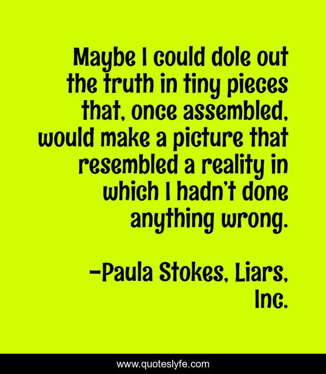 This page presents the quote "Maybe I could dole out the truth in tiny pieces that, once assembled, would make a picture that resembled a reality in which I hadn’t done anything wrong.". Author of this quote is Paula Stokes, Liars, Inc.. This quote is about lying, truth,.