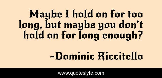 This page presents the quote "Maybe I hold on for too long, but maybe you don’t hold on for long enough?". Author of this quote is Dominic Riccitello. This quote is about holding-on, love, relationship, letting-go, quote, feelings, thoughts, reality, moving-on,.