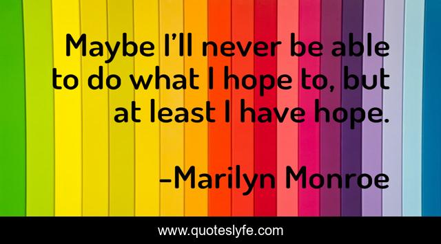 This page presents the quote "Maybe I’ll never be able to do what I hope to, but at least I have hope.". Author of this quote is Marilyn Monroe. This quote is about life, dream, hope,.