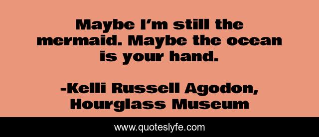 This page presents the quote "Maybe I’m still the mermaid. Maybe the ocean is your hand.". Author of this quote is Kelli Russell Agodon, Hourglass Museum. This quote is about mermaids, love, relationship, mermaid-romance, couple, ocean, romance, marriage, mermaid,.