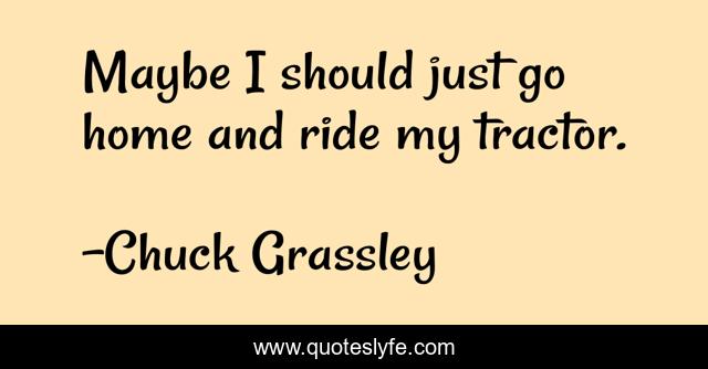 This page presents the quote "Maybe I should just go home and ride my tractor.". Author of this quote is Chuck Grassley. This quote is about ride, tractor, just,.