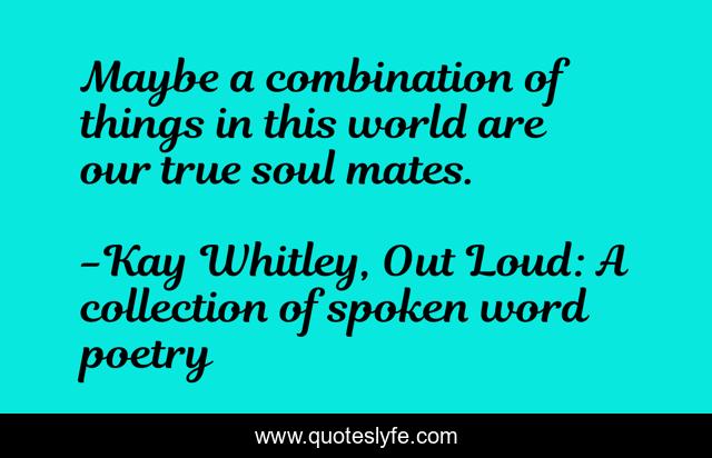 This page presents the quote "Maybe a combination of things in this world are our true soul mates.". Author of this quote is Kay Whitley, Out Loud: A collection of spoken word poetry. This quote is about love, soul-mates, affection, personality,.