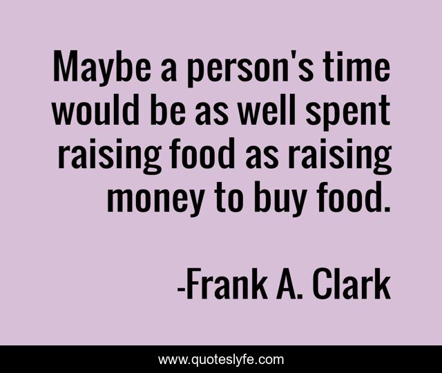 This page presents the quote "Maybe a person's time would be as well spent raising food as raising money to buy food.". Author of this quote is Frank A. Clark. This quote is about money, time, person,.