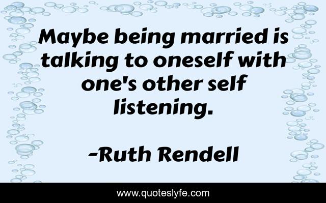 This page presents the quote "Maybe being married is talking to oneself with one's other self listening.". Author of this quote is Ruth Rendell. This quote is about friendship, marriage, inspirational, enthusiasm,.