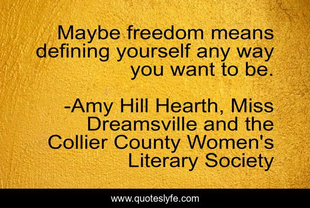 "Amy Hill Hearth, Miss Dreamsville and the Collier County Women's Literary Society Quotes." Quoteslyfe.com, 2025. Fri. 05 Dec. 2025. <https://www.quoteslyfe.com/quote/Maybe-freedom-means-defining-yourself-any-way-171518>.