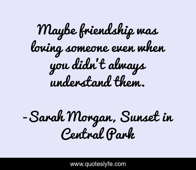 "Sarah Morgan, Sunset in Central Park Quotes." Quoteslyfe.com, 2025. Sat. 06 Dec. 2025. <https://www.quoteslyfe.com/quote/Maybe-friendship-was-loving-someone-even-when-50674>.