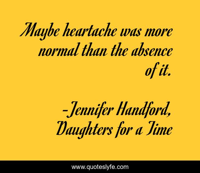 This page presents the quote "Maybe heartache was more normal than the absence of it.". Author of this quote is Jennifer Handford, Daughters for a Time. This quote is about grief, heartache,.