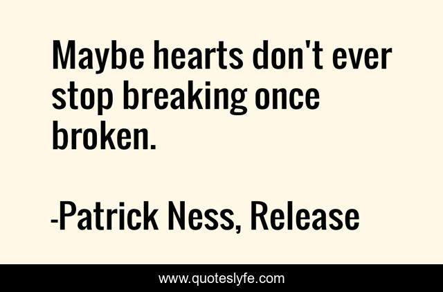 "Patrick Ness, Release Quotes." Quoteslyfe.com, 2025. Sat. 06 Dec. 2025. <https://www.quoteslyfe.com/quote/Maybe-hearts-don-t-ever-stop-breaking-48649>.