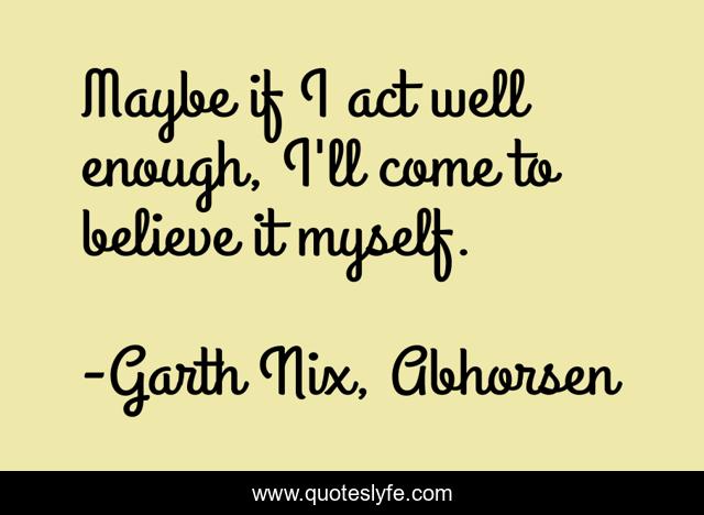 This page presents the quote "Maybe if I act well enough, I'll come to believe it myself.". Author of this quote is Garth Nix, Abhorsen. This quote is about fantasy, confidence, identity,.