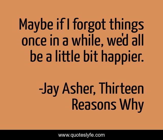 "Jay Asher, Thirteen Reasons Why Quotes." Quoteslyfe.com, 2025. Sat. 13 Dec. 2025. <https://www.quoteslyfe.com/quote/Maybe-if-I-forgot-things-once-in-3486>.