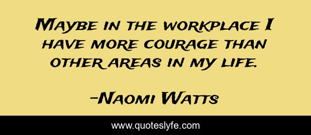 This page presents the quote "Maybe in the workplace I have more courage than other areas in my life.". Author of this quote is Naomi Watts. This quote is about life, my life, workplace,.