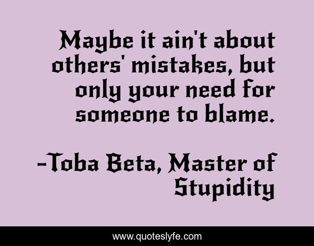 "Toba Beta, Master of Stupidity Quotes." Quoteslyfe.com, 2025. Sun. 07 Dec. 2025. <https://www.quoteslyfe.com/quote/Maybe-it-ain-t-about-others-mistakes-165133>.