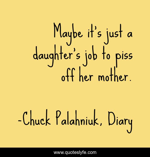 This page presents the quote "Maybe it's just a daughter's job to piss off her mother.". Author of this quote is Chuck Palahniuk, Diary. This quote is about daughter, family, mother,.