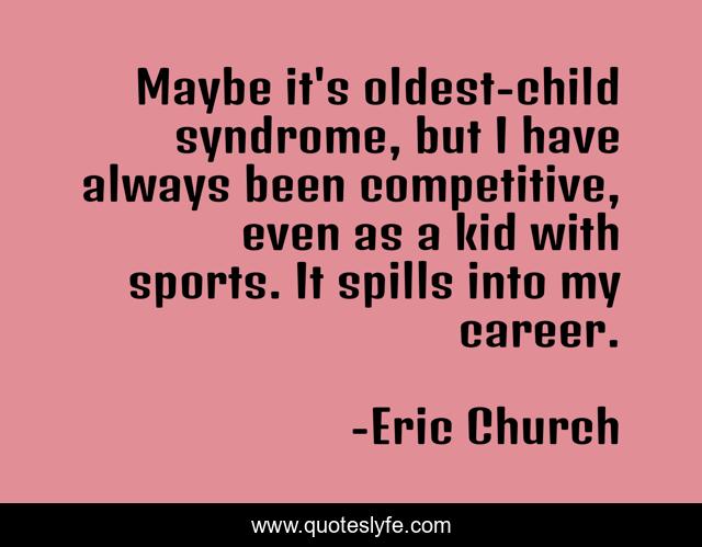 This page presents the quote "Maybe it's oldest-child syndrome, but I have always been competitive, even as a kid with sports. It spills into my career.". Author of this quote is Eric Church. This quote is about career, competitive, kid,.