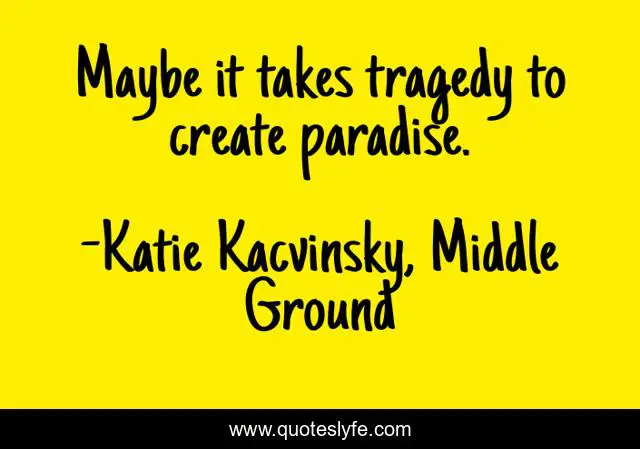 "Katie Kacvinsky, Middle Ground Quotes." Quoteslyfe.com, 2025. Fri. 05 Dec. 2025. <https://www.quoteslyfe.com/quote/Maybe-it-takes-tragedy-to-create-paradise-226321>.