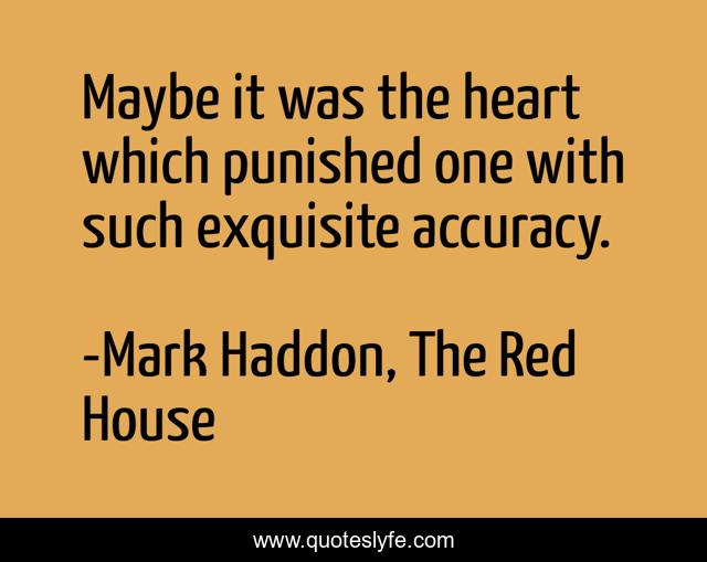 This page presents the quote "Maybe it was the heart which punished one with such exquisite accuracy.". Author of this quote is Mark Haddon, The Red House. This quote is about heart, love, affection,.