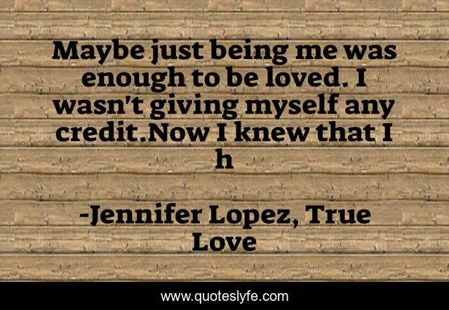 This page presents the quote "Maybe just being me was enough to be loved. I wasn't giving myself any credit.Now I knew that I h". Author of this quote is Jennifer Lopez, True Love. This quote is about self-respect, self-esteem,.