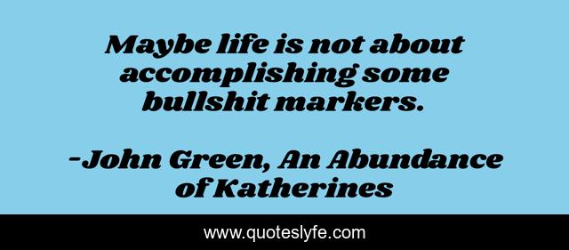 This page presents the quote "Maybe life is not about accomplishing some bullshit markers.". Author of this quote is John Green, An Abundance of Katherines. This quote is about life, wisdom,.