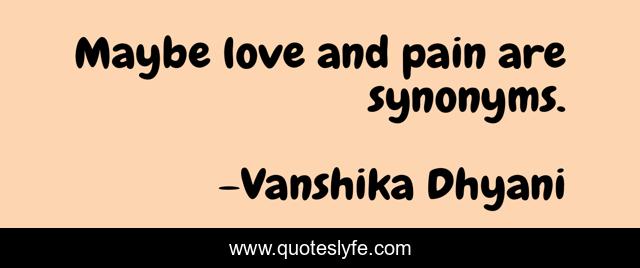"Vanshika Dhyani Quotes." Quoteslyfe.com, 2025. Sun. 07 Dec. 2025. <https://www.quoteslyfe.com/quote/Maybe-love-and-pain-are-synonyms-22192>.