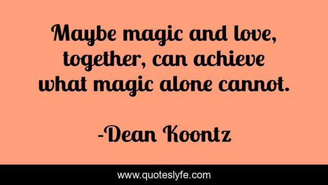 "Dean Koontz Quotes." Quoteslyfe.com, 2025. Sat. 06 Dec. 2025. <https://www.quoteslyfe.com/quote/Maybe-magic-and-love-together-can-achieve-133959>.