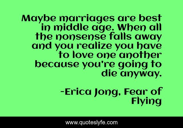 "Erica Jong, Fear of Flying Quotes." Quoteslyfe.com, 2025. Mon. 08 Dec. 2025. <https://www.quoteslyfe.com/quote/Maybe-marriages-are-best-in-middle-age-77299>.