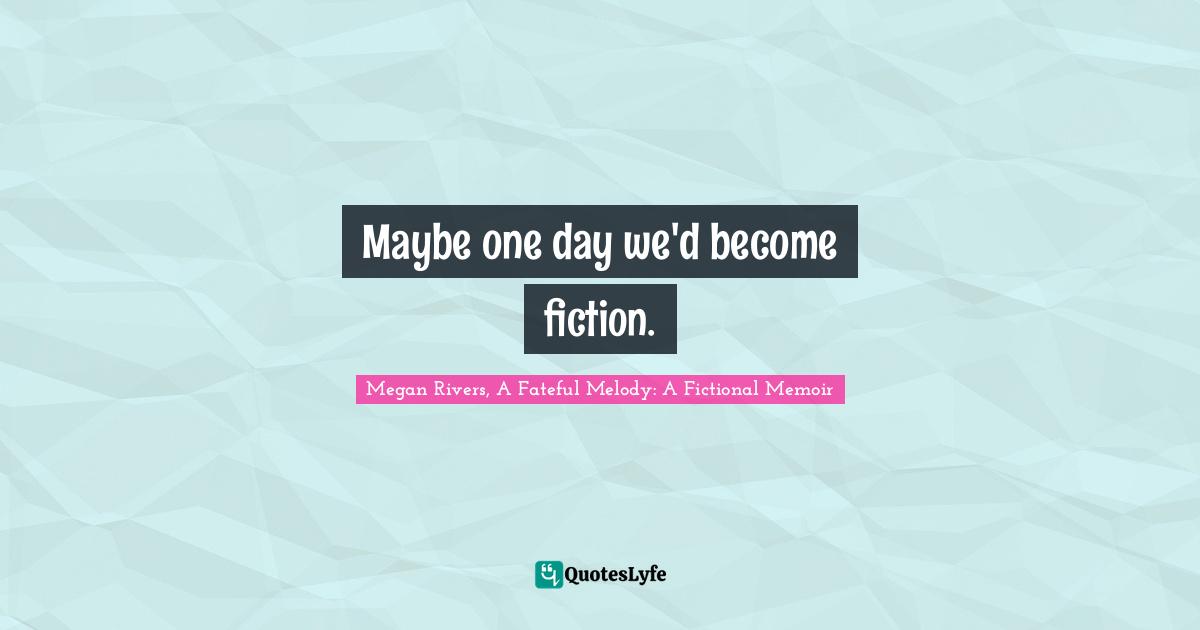 "Megan Rivers, A Fateful Melody: A Fictional Memoir Quotes." Quoteslyfe.com, 2026. Wed. 14 Jan. 2026. <https://www.quoteslyfe.com/quote/Maybe-one-day-we-d-become-fiction-79334>.