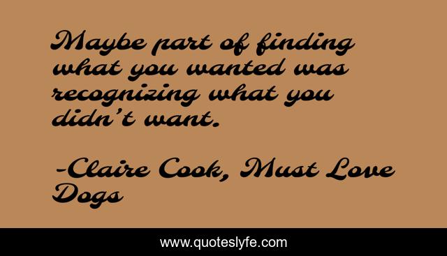 "Claire Cook, Must Love Dogs Quotes." Quoteslyfe.com, 2025. Sat. 13 Dec. 2025. <https://www.quoteslyfe.com/quote/Maybe-part-of-finding-what-you-wanted-204013>.