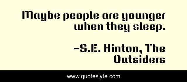 "S.E. Hinton, The Outsiders Quotes." Quoteslyfe.com, 2025. Sat. 06 Dec. 2025. <https://www.quoteslyfe.com/quote/Maybe-people-are-younger-when-they-sleep-184313>.