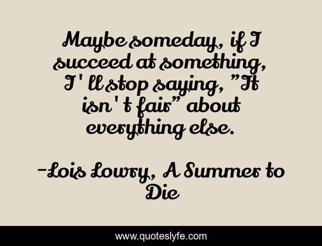 This page presents the quote "Maybe someday, if I succeed at something, I'll stop saying, "It isn't fair" about everything else.". Author of this quote is Lois Lowry, A Summer to Die. This quote is about perseverance, life, equality, success, trials, ambition, aims, difficulties, determination,.