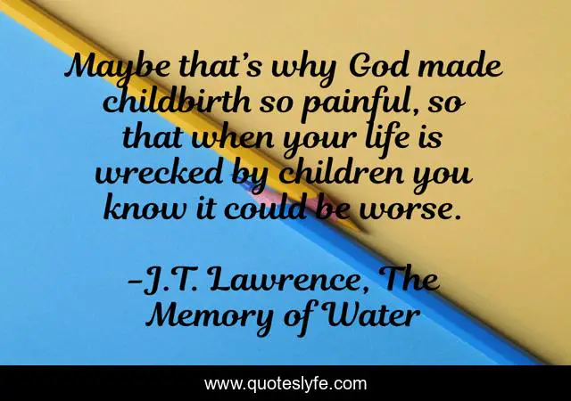 "J.T. Lawrence, The Memory of Water Quotes." Quoteslyfe.com, 2025. Tue. 09 Dec. 2025. <https://www.quoteslyfe.com/quote/Maybe-that-s-why-God-made-childbirth-56034>.
