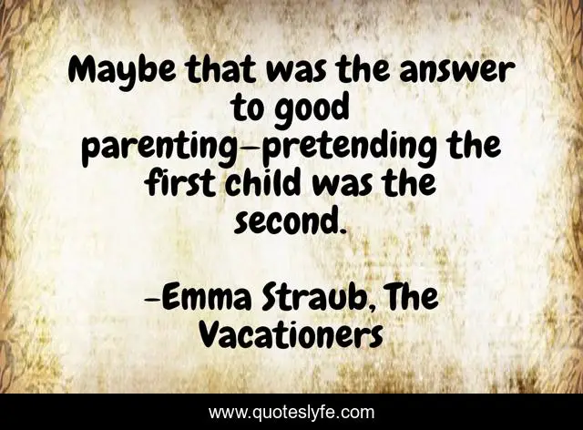 This page presents the quote "Maybe that was the answer to good parenting—pretending the first child was the second.". Author of this quote is Emma Straub, The Vacationers. This quote is about parenting, family,.