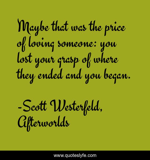 "Scott Westerfeld, Afterworlds Quotes." Quoteslyfe.com, 2025. Mon. 08 Dec. 2025. <https://www.quoteslyfe.com/quote/Maybe-that-was-the-price-of-loving-120302>.