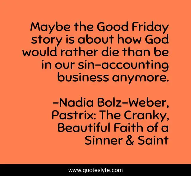 "Nadia Bolz-Weber, Pastrix: The Cranky, Beautiful Faith of a Sinner & Saint Quotes." Quoteslyfe.com, 2025. Sat. 06 Dec. 2025. <https://www.quoteslyfe.com/quote/Maybe-the-Good-Friday-story-is-about-177974>.