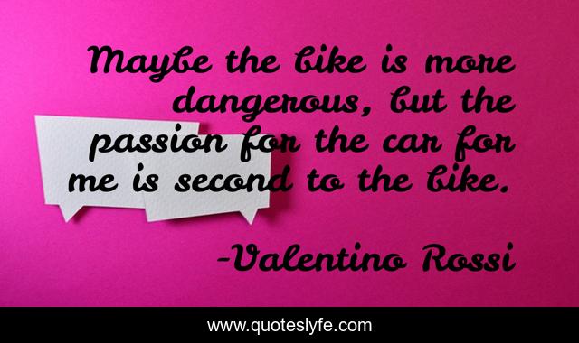 This page presents the quote "Maybe the bike is more dangerous, but the passion for the car for me is second to the bike.". Author of this quote is Valentino Rossi. This quote is about me, bike, passion,.