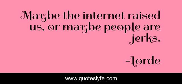 This page presents the quote "Maybe the internet raised us, or maybe people are jerks.". Author of this quote is Lorde. This quote is about alternative, music, awesome, lyrics,.