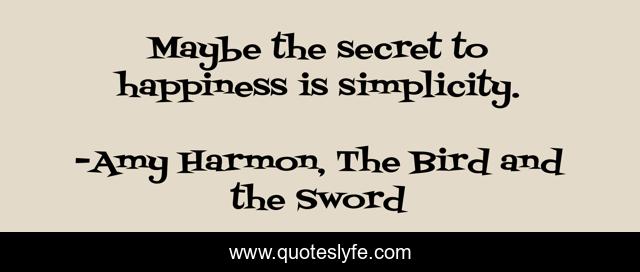 This page presents the quote "Maybe the secret to happiness is simplicity.". Author of this quote is Amy Harmon, The Bird and the Sword. This quote is about simplicity, amy-harmon, happiness, the-bird-and-the-sword,.