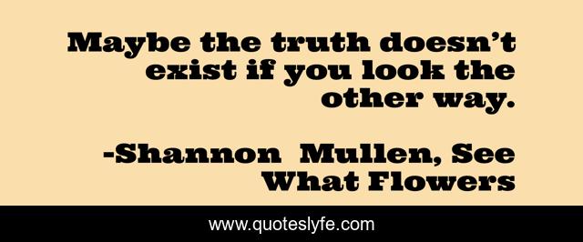 This page presents the quote "Maybe the truth doesn’t exist if you look the other way.". Author of this quote is Shannon Mullen, See What Flowers. This quote is about life-lessons, illusions, truth, reality,.