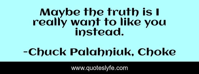 This page presents the quote "Maybe the truth is I really want to like you instead.". Author of this quote is Chuck Palahniuk, Choke. This quote is about like, truth,.