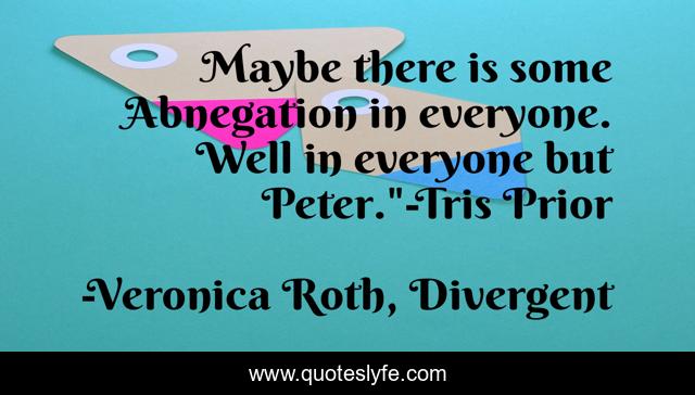 This page presents the quote "Maybe there is some Abnegation in everyone. Well in everyone but Peter."-Tris Prior". Author of this quote is Veronica Roth, Divergent. .